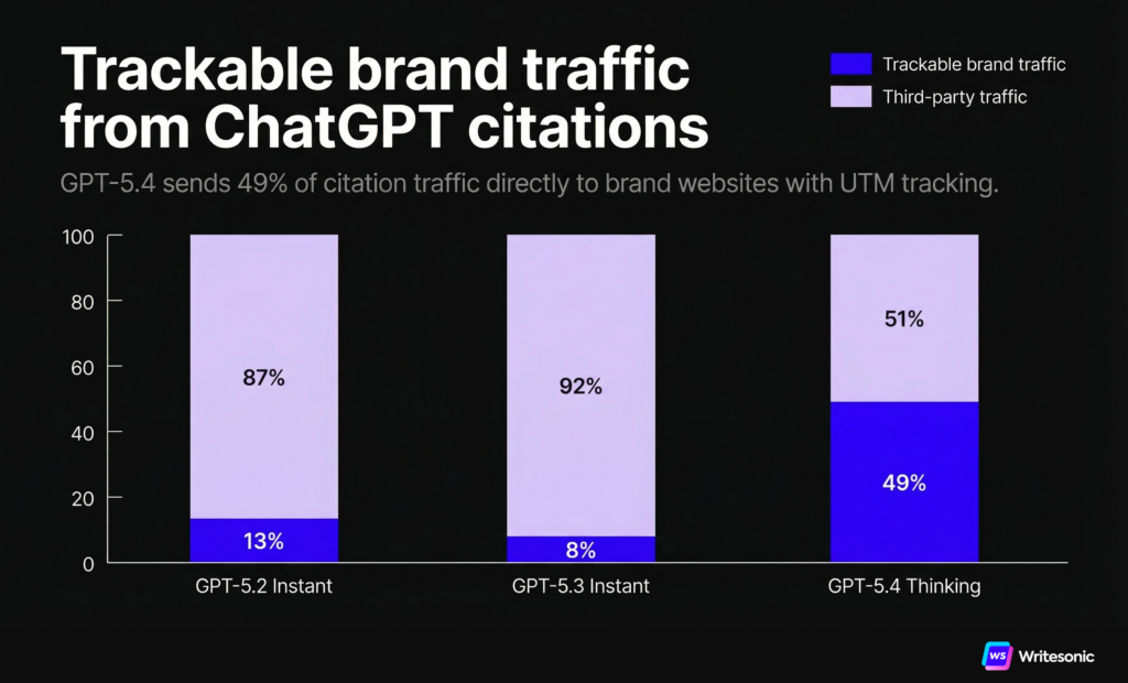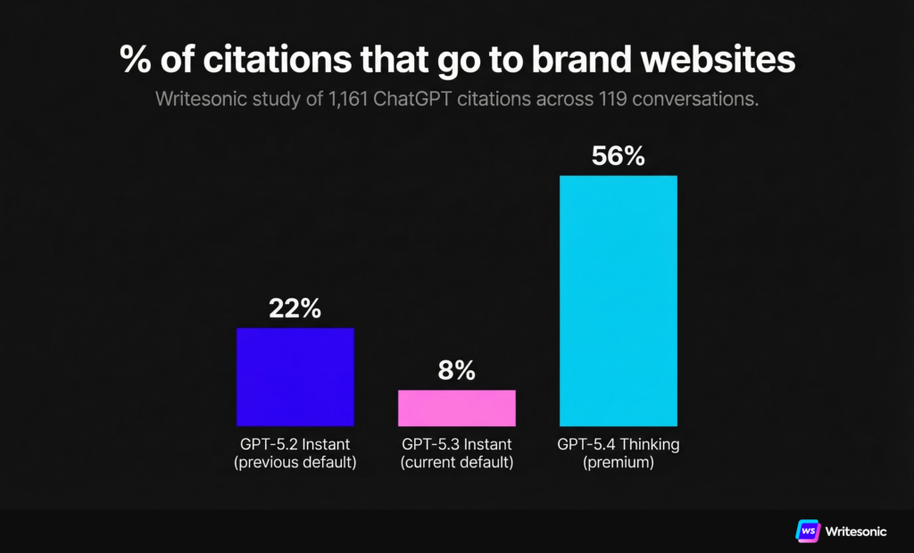 56% of GPT-5.4’s citations go to brand websites. Only 8% of GPT-5.3’s do.