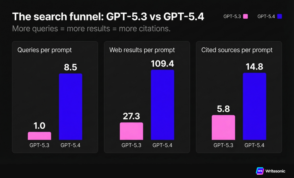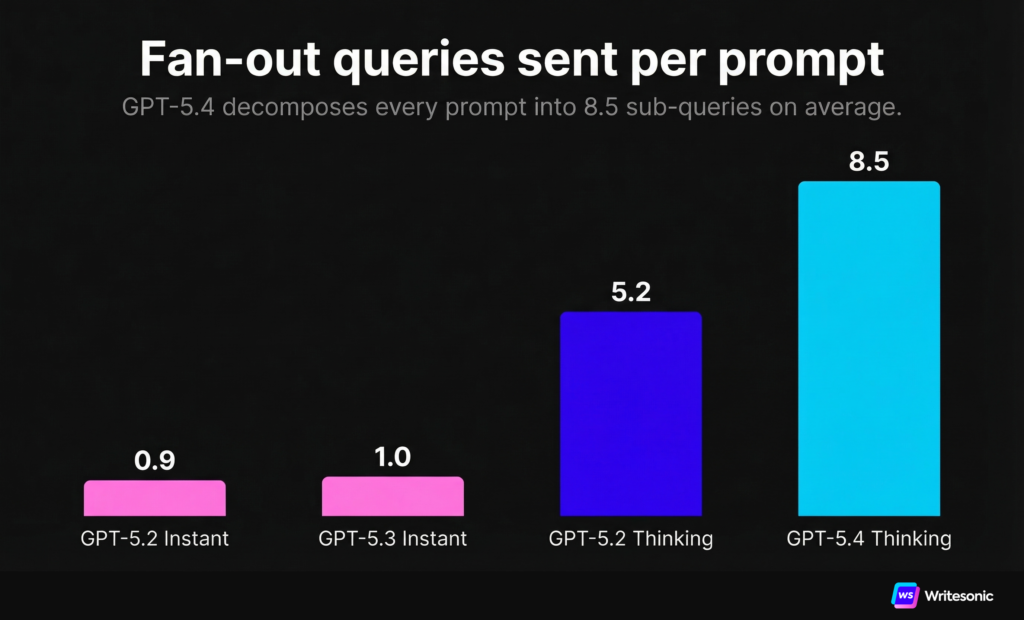 GPT-5.4 sends 8.5x more fan-out queries than GPT-5.3