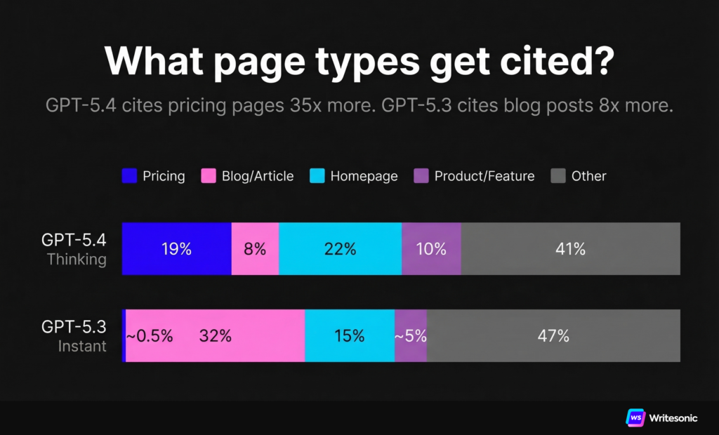 Here’s the short version: GPT-5.3 sends users to blog posts about your brand. GPT-5.4 sends them to your actual website. Same question. Completely different outcomes.