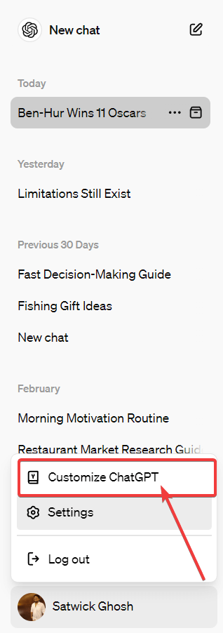- Then, select Customize ChatGPT.