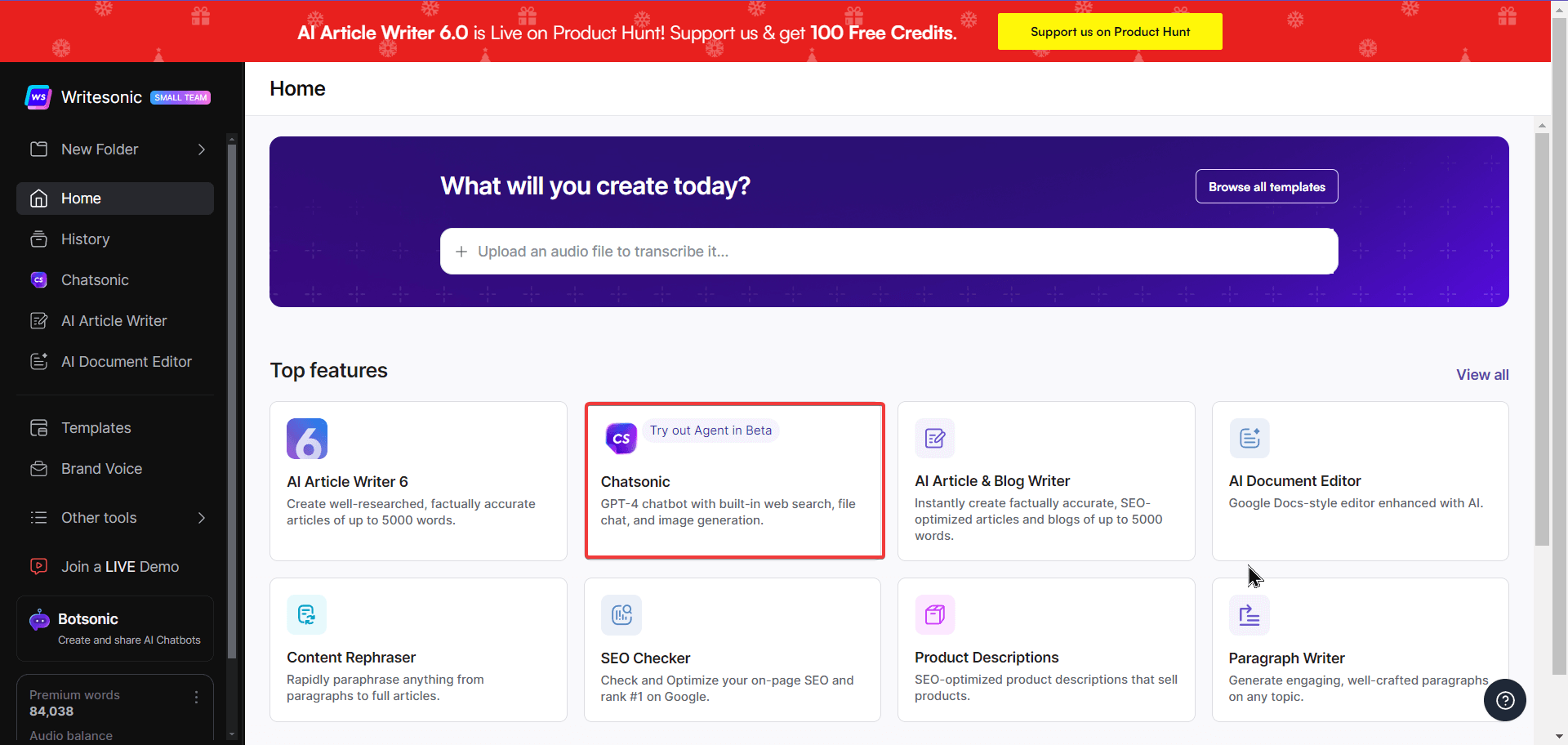- You’ll be redirected to the Chatsonic interface.