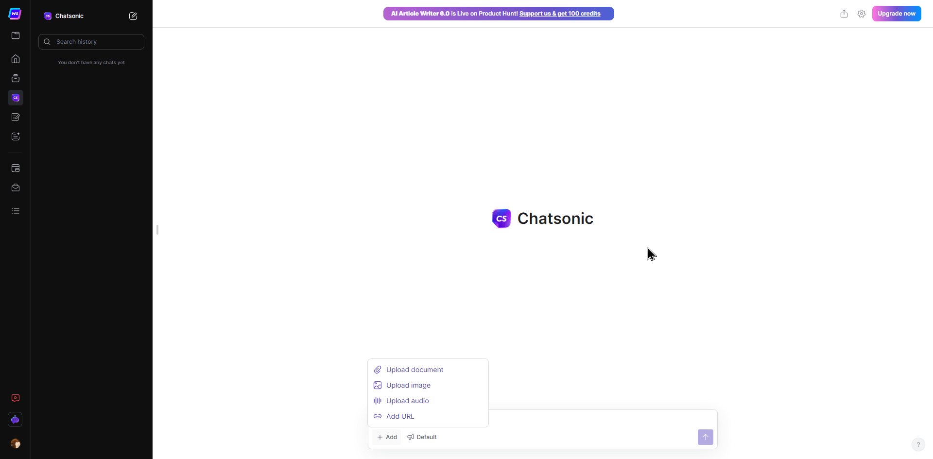 - You can now use text, image, or audio inputs to create content or artwork. You can even add a link or upload a document and ask the Chatsonic AI to answer your queries related to that.