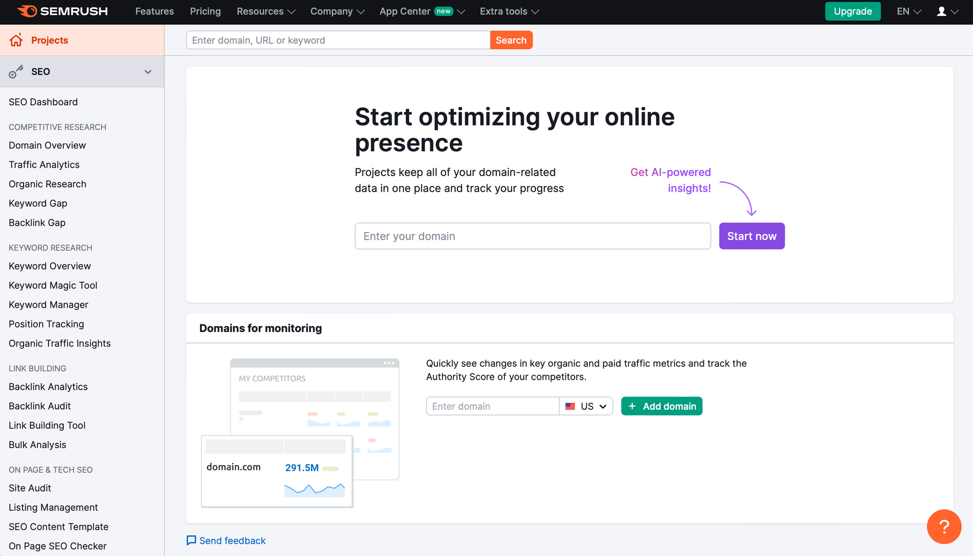 Key features of Semrush: