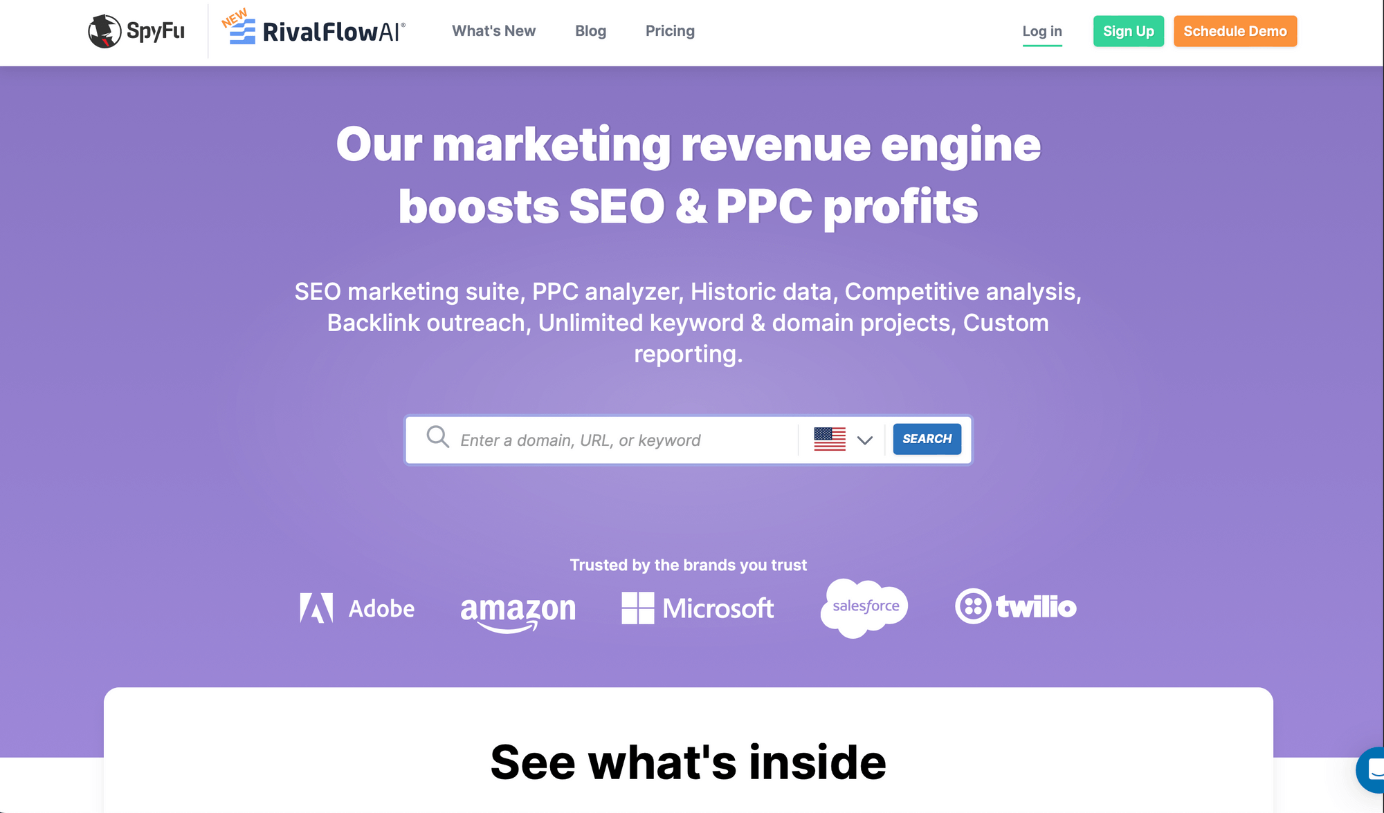 Features of SpyFu: