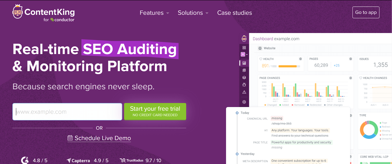 | ContentKing | Website crawling and indexing | Starts at $39/month |