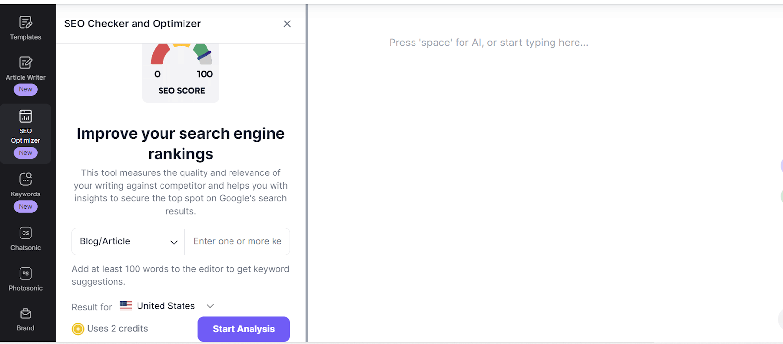 The SEO Checker and Optimizer tool is part of Writesonic’s subscription package. After you subscribe to the tool, you can start optimizing your articles with the tool to enhance your website traffic. You also get to receive a one time offer of 25 credits to explore advanced features and 25 generations per month to work with a few features when you sign up for Writesonic.
