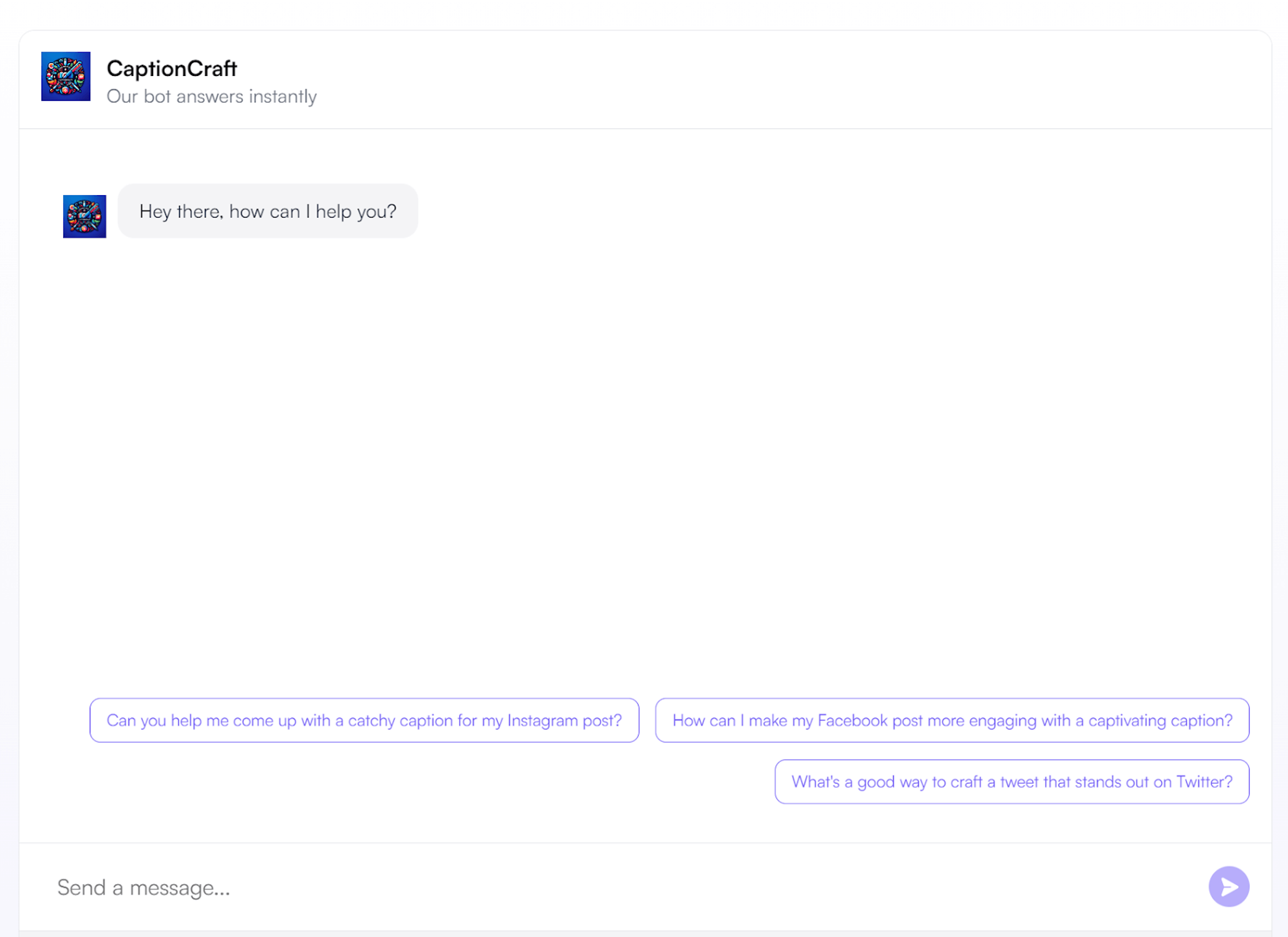 This is how my final bot will look. And every detail, including the starter questions, name, and image, is editable as well.
